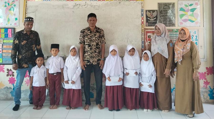 Keuchik Teupin Peuraho Salurkan Beasiswa Rp1 Juta per Murid Baru SDN 11 Meureudu