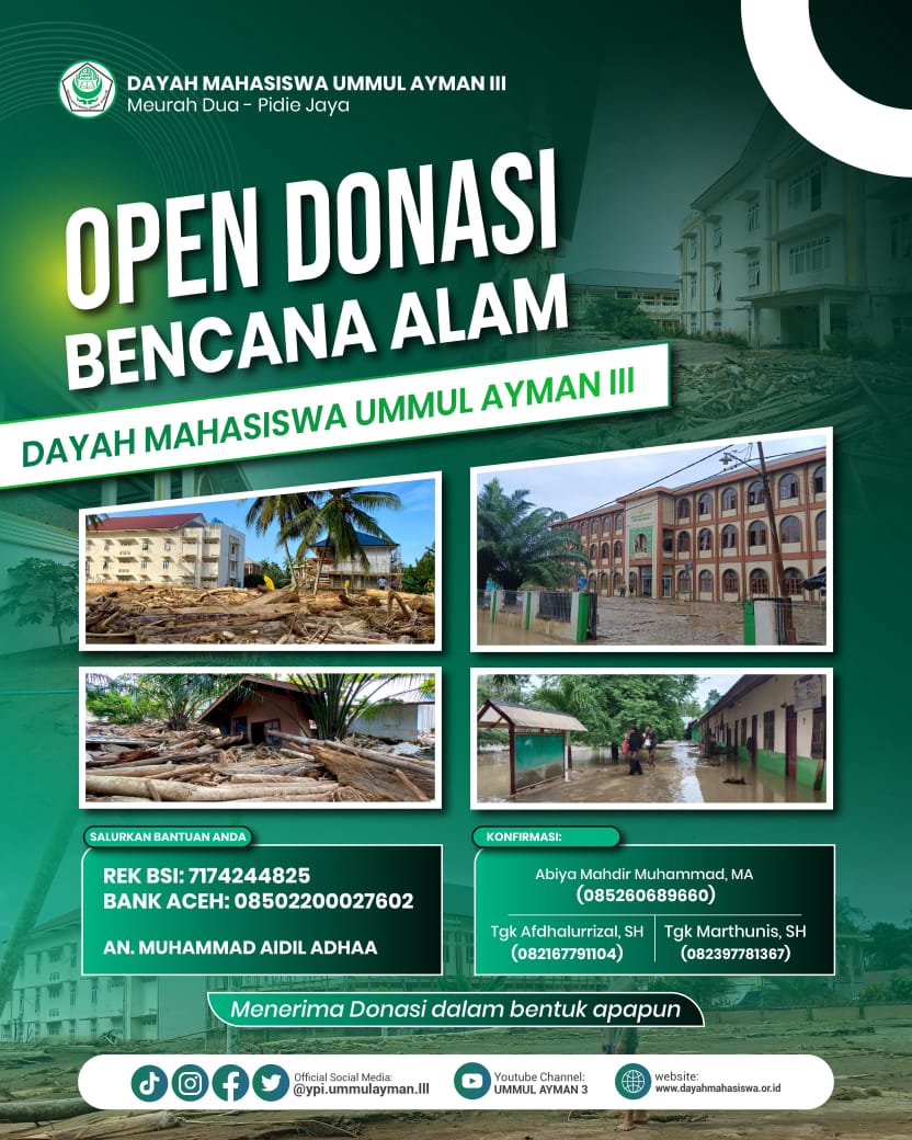 LIPUTANGAMPONGNEWS.ID -Keluarga Besar Dayah Mahasiswa Ummul Ayman 3 menyampaikan surat terbuka kepada Presiden Republik Indonesia, H. Prabowo Subianto, terkait permohonan bantuan alat berat untuk pembersihan lumpur pascabencana yang melanda lingkungan dayah tersebut.