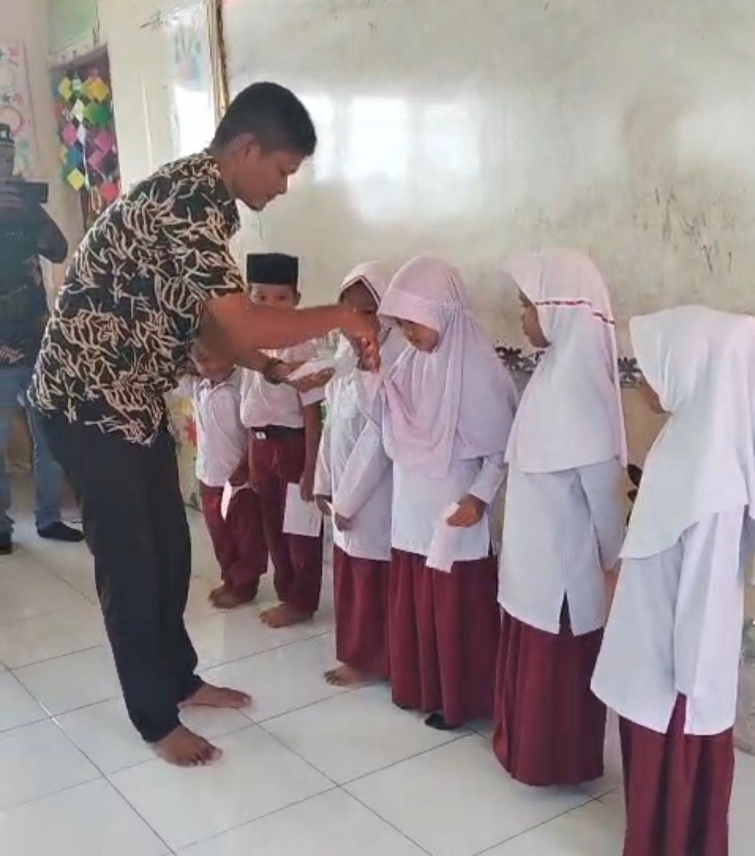 Keuchik Teupin Peuraho Salurkan Beasiswa Rp1 Juta per Murid Baru SDN 11 Meureudu