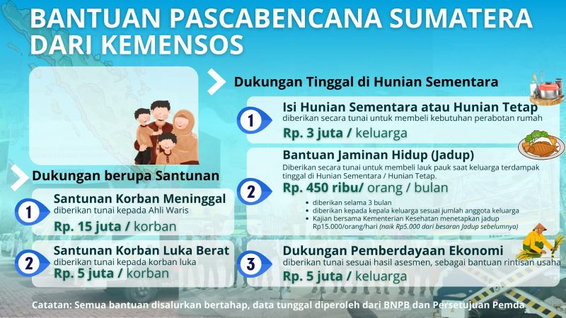 Kemensos menyalurkan seluruh bantuan pasca bencana tersebut secara bertahap dan tepat sasaran. Penyaluran dilakukan berdasarkan data dari BNPB serta berkoordinasi dengan pemerintah daerah, guna memastikan bantuan benar-benar diterima oleh masyarakat yang berhak. (**)