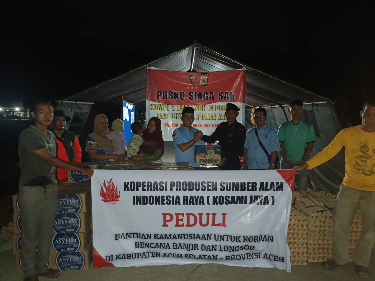 Koperasi Produsen Sumber Alam Indonesia Raya (KOSAMI JAYA) menyalurkan bantuan kemanusiaan bagi korban banjir di wilayah Trumon Raya, Kabupaten Aceh Selatan, pada Rabu (3/11/2025).