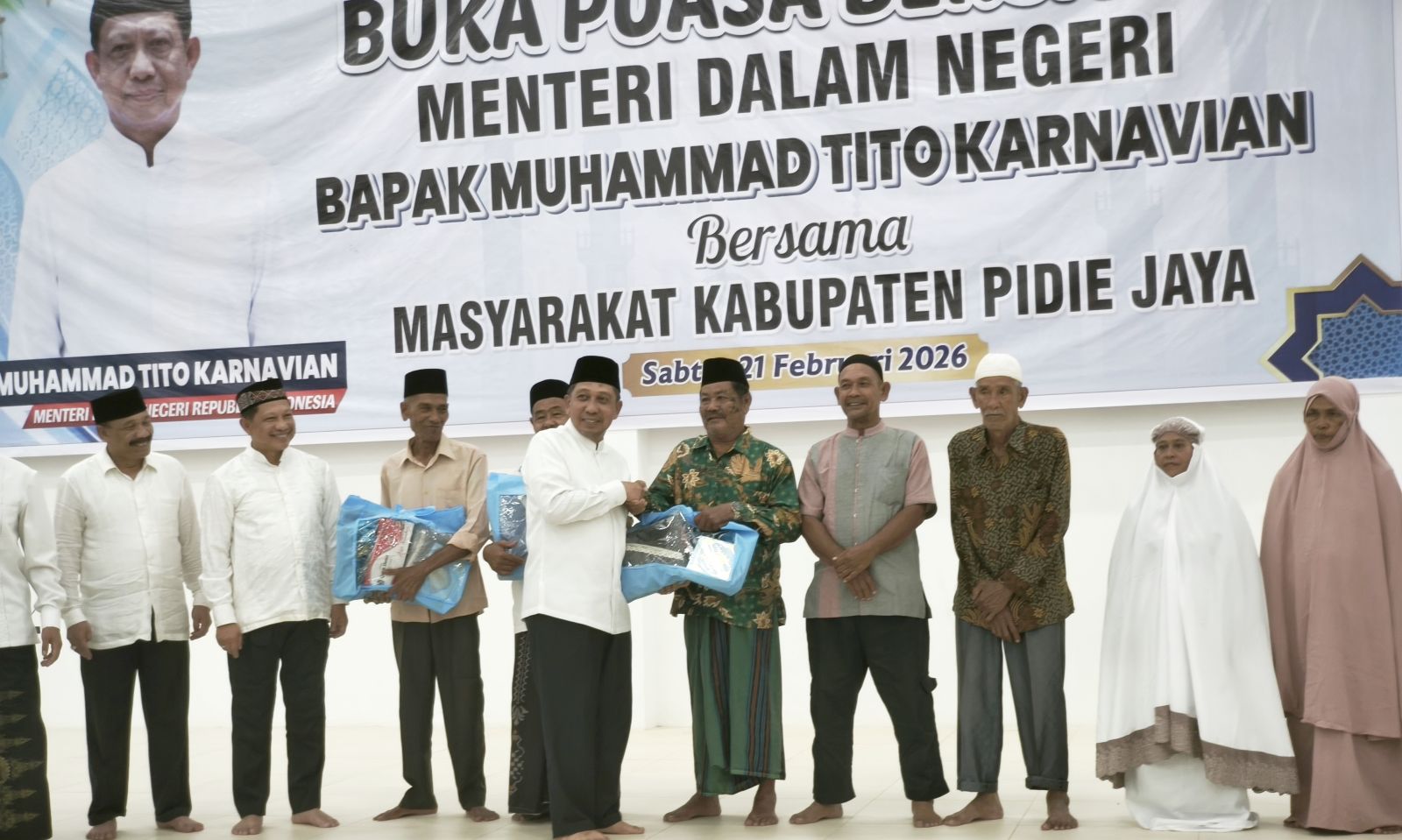 Sebagai puncak kegiatan di Pidie Jaya, Mendagri Tito turut menyerahkan ratusan paket bantuan dari Presiden RI secara simbolis kepada warga terdampak bencana.