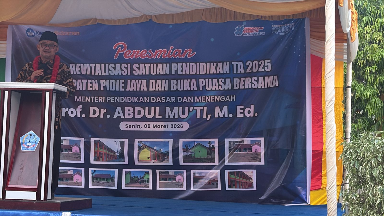 Kunjungan kerja ditutup di SMA Negeri 1 Meureudu dengan penandatanganan 27 prasasti revitalisasi sekolah yang terdiri dari tiga PAUD, 16 SD, empat SMP, dan empat SMA. Pada kesempatan tersebut juga diserahkan 20 paket School Kit, dilanjutkan dengan foto bersama, buka puasa bersama, serta salat Maghrib berjamaah. Usai rangkaian kegiatan di Pidie Jaya, rombongan Mendikdasmen melanjutkan perjalanan menuju Kabupaten Bireuen untuk agenda kunjungan kerja berikutnya. Bupati berharap program revitalisasi sekolah ini dapat mempercepat pemerataan fasilitas pendidikan yang layak serta menciptakan lingkungan belajar yang aman, nyaman, dan berkualitas bagi para siswa di Aceh. (**)