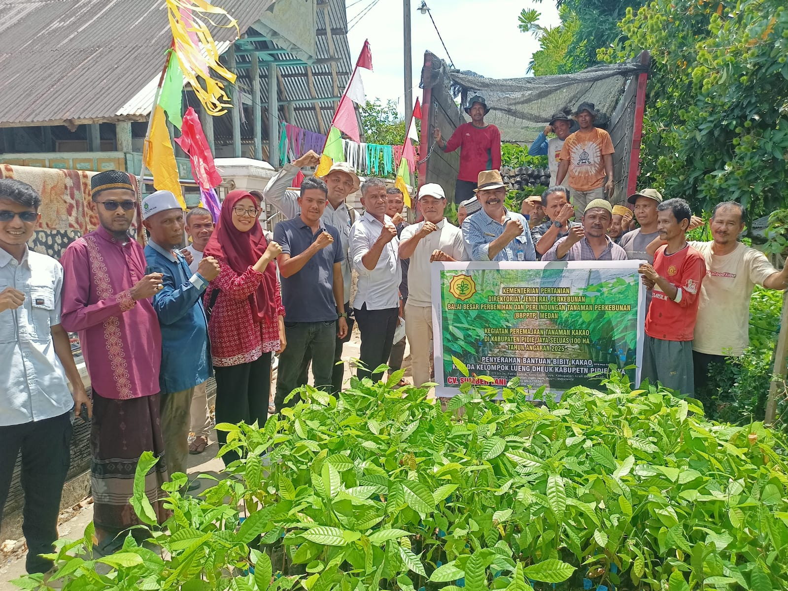LIPUTANGAMPONGNEWS.ID - Pemerintah Kabupaten Pidie Jaya melalui Dinas Perkebunan dan Peternakan (Disbunnak) menyerahkan secara simbolis 200.000 batang bibit kakao hibrida kepada kelompok tani di