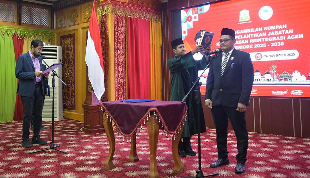 LIPUTANGAMPONGNEWS.ID - Gubernur Aceh Muzakir Manaf (Mualem) resmi melantik Jamaluddin, SH., M.Kn. sebagai Ketua Badan Reintegrasi Aceh (BRA) periode 2025–2030, di Anjong Mon Mata, Banda