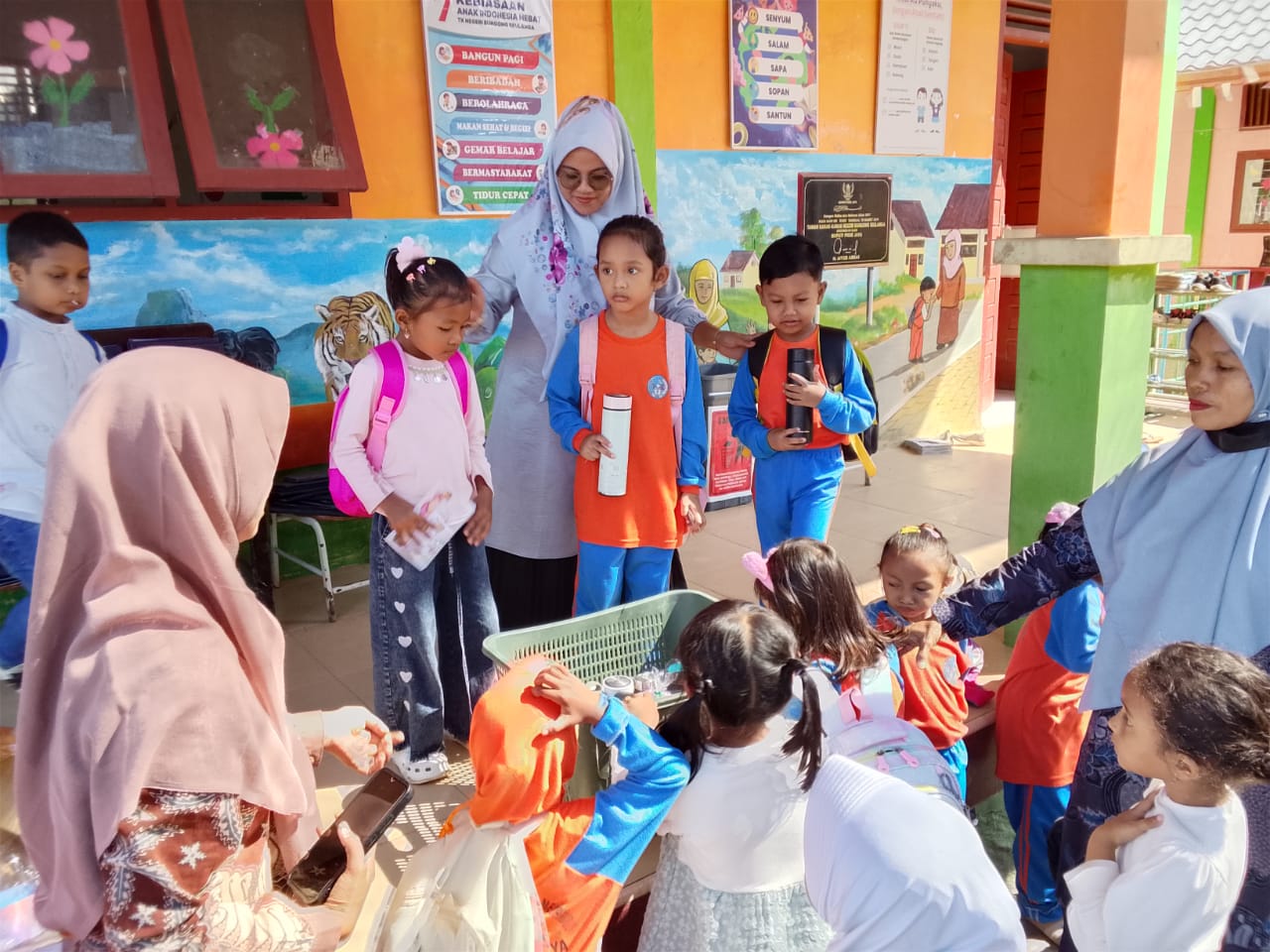 LIPUTANGAMPONGNEWS.ID - Muhammad Richard, relawan cilik dari Lembaga CYDC (Children, Youth & Disabilities for Change), menyalurkan bantuan tumbler kepada sekolah tempat ia pernah menimba ilmu,