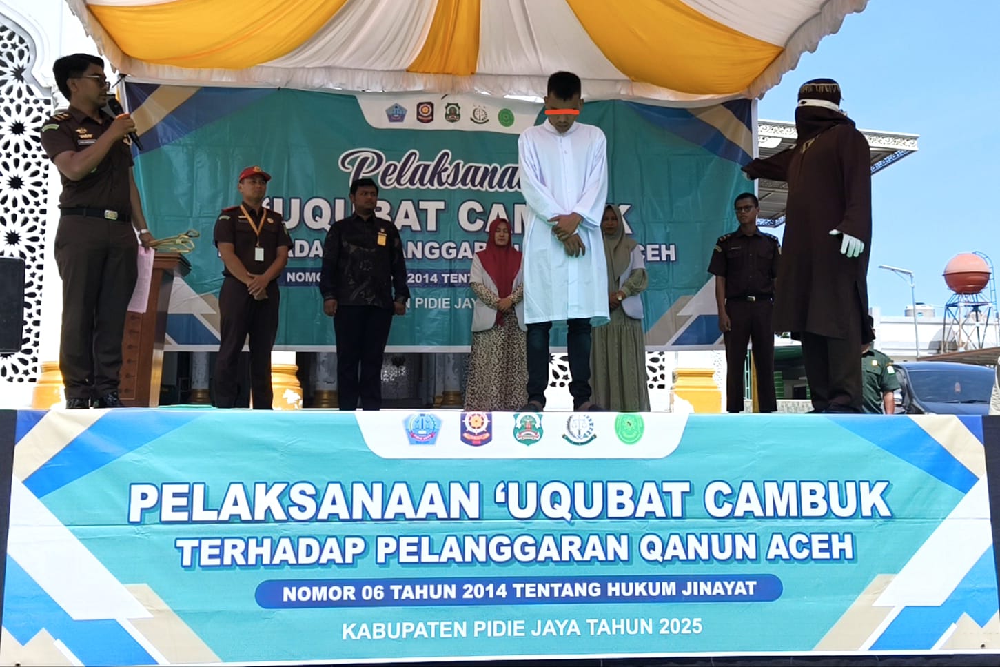 LIPUTANGAMPONGNEWS.ID - Kejaksaan Negeri Pidie Jaya mengeksekusi hukuman cambuk terhadap dua pemuda asal Meureudu yang terlibat dalam praktik judi online (jarimah maisir), Kamis pagi