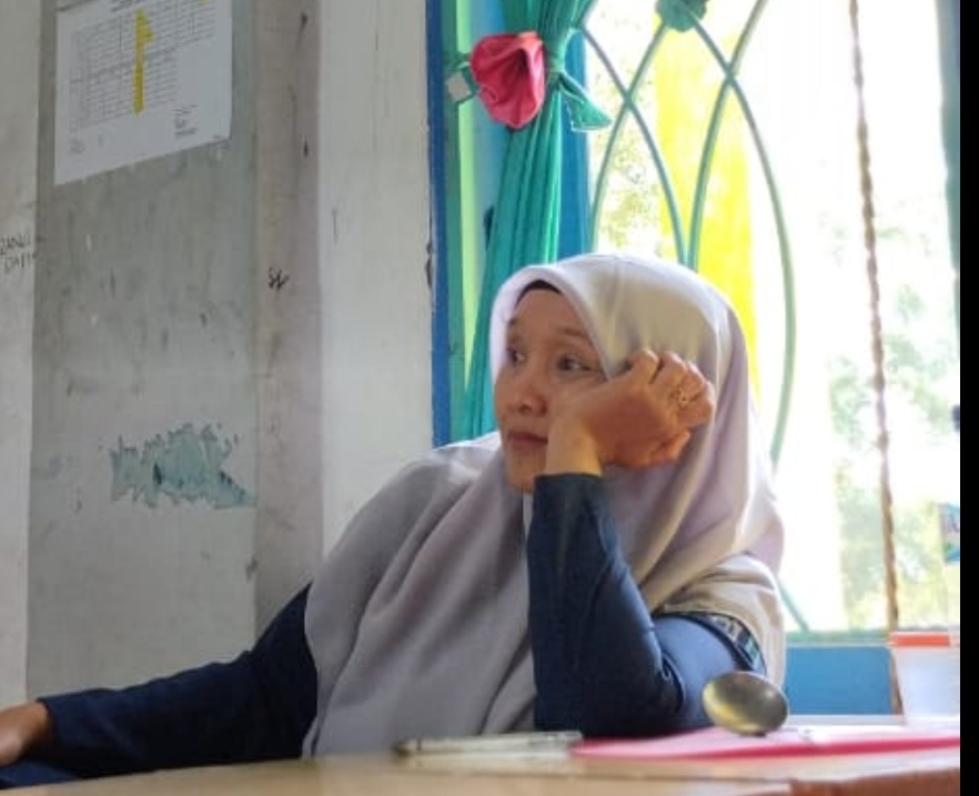 Foto : Musrina, S.Pd, Guru SMAN Unggul Pidie Jaya duduk memikirkan inspirasi baru | LIPUTAN GAMPONG NEWS