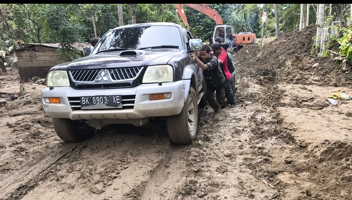 Bersama tim relawan, rombongan menggunakan mobil double cabin 4WD menembus akses jalan yang terputus dan jembatan rusak untuk mengantar sembako ke Gampong Beurawang, Meunasah Lhok, Meunasah Krueng Tunong Gampong Manyang Cut dalam Kecamatan Meureudu serta Gampong Dayah Husein di Kecamatan Meurah Dua.
