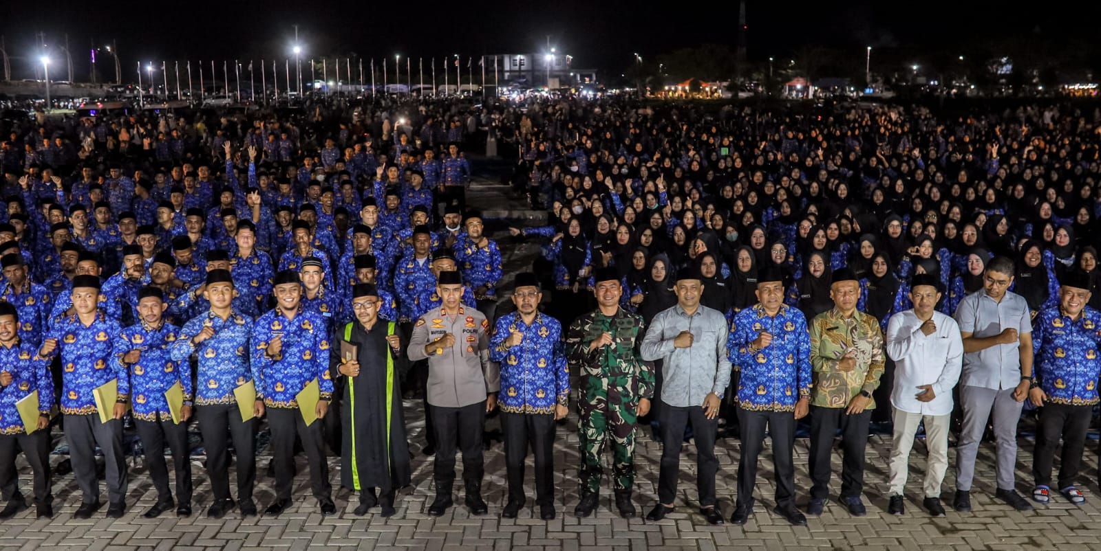 LIPUTANGAMPONGNEWS.ID - Suasana malam yang sejuk menjadi saksi pelantikan dan pengambilan sumpah ribuan Aparatur Sipil Negara (ASN) di lingkungan Pemerintah Kabupaten Pidie Jaya, Sabtu malam