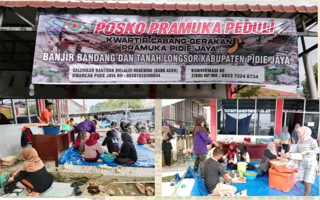 LIPUTANGAMPONGNEWS.ID - Gerakan Pramuka Kwartir Cabang (Kwarcab) Pidie Jaya tampil sebagai garda terdepan kemanusiaan saat bencana hidrometeorologi berupa banjir bandang dan longsor melanda