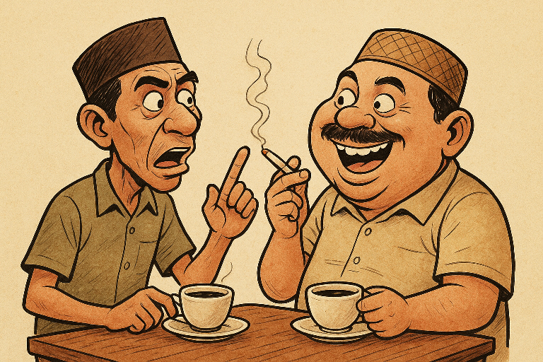 PROHCAKRA - Suasana warung kopi disebuah desa, meja kayu bergetar tiap kali Bus dan dum truk lewat. Pawang Beurandeh & Polem Beuransah duduk manis sambil nyeruput kopi hitam pancong,